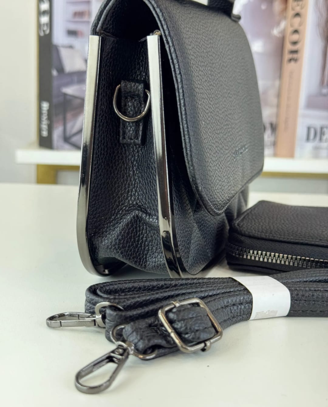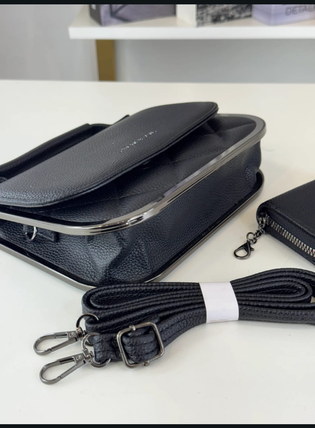 O Kit Bolsa + Carteira possui bordado matelassê, fecho em botão magnético e detalhe de borda metálica que valoriza o design. Conta com alça de mão e alça transversal ajustável e removível, garantindo praticidade. Moderna e estilosa, é perfeita para compor looks elegantes.